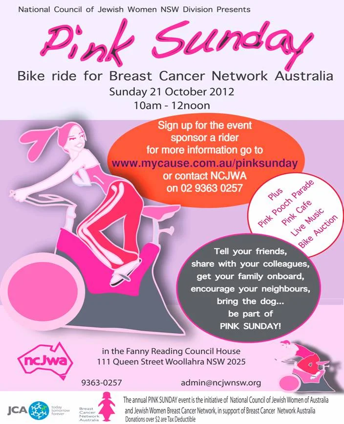 Nicola was the Event Co-ordinator of the 2012 Pink Sunday, a fundraiser for Breast Cancer Network Australia. Through the creation of an online fundraising campaign she helped the NCJWA NSW to raise over $15, 000 and put on a highly successful event.