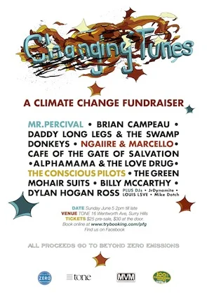 Nicola was the event organiser of the Changing Tunes Climate Change Fundraiser Mini-Festival. The event raised money and awareness for Beyond Zero Emissions and featured artists such as M. Percival, Ngaiire, Billie McCarthy and Cafe of the Gate of Salvation.